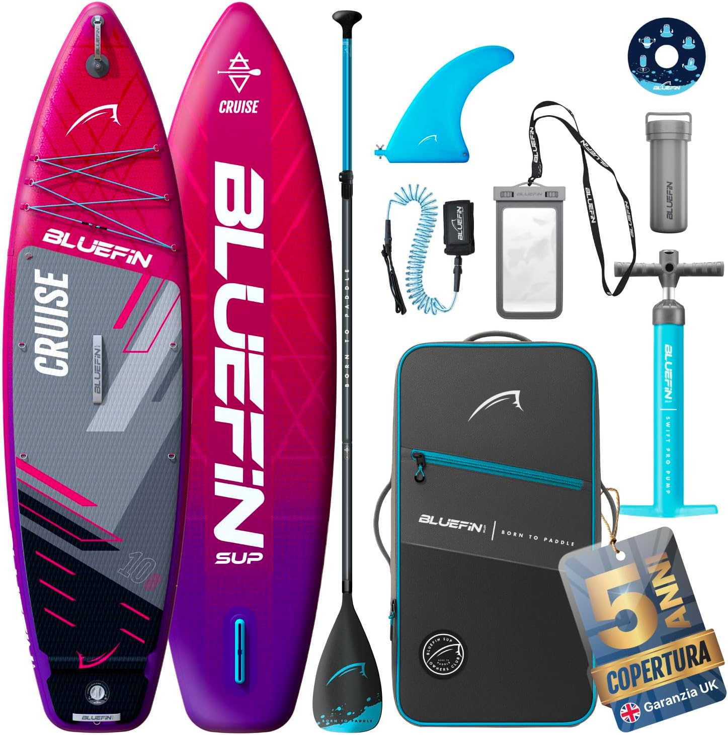 Bluefin Cruise 108 Paddleboard gonfiabile - Pacchetto e accessori premium - Deckpad antiscivolo e leggero - 6 spesso tutto tondo - Tavola da paddleboard - Stand up up Board per adulti e ragazzi